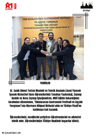 tebr k eder, öğrenc ler m ze Türk ye f nal nde başarılar d ler z.