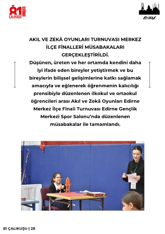 öğrenc ler arası Akıl ve Zekâ Oyunları Ed rne